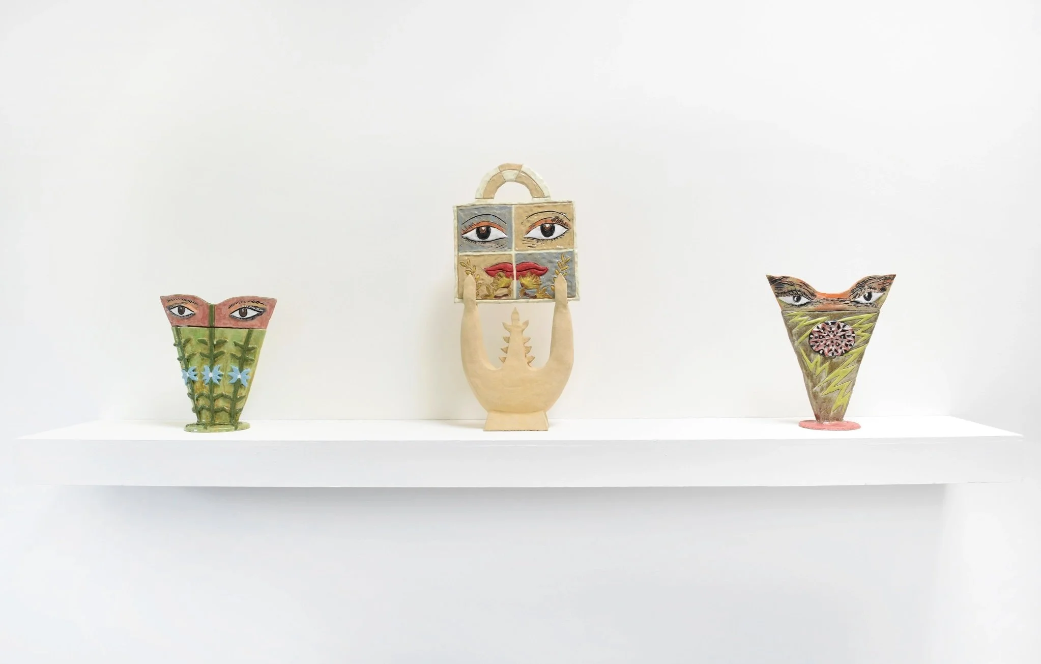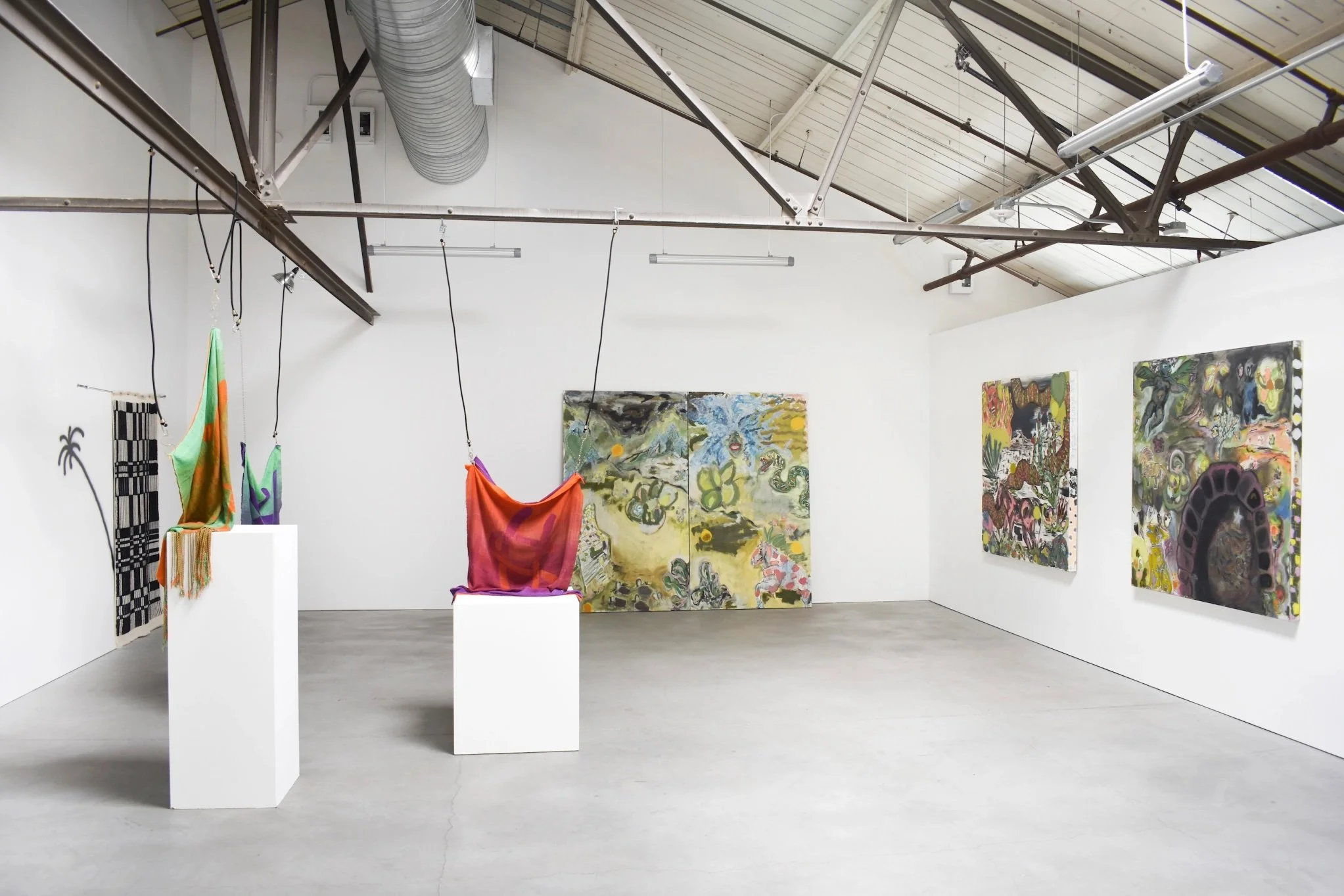 In 2019, I curated a two-part group exhibition at Anglim Gilbert Gallery, titled Summer Sessions, which featured the work of six emerging Bay Area artists. The series was conceived as an homage to the gallery’s historic Introductions program, which provided many now-established Bay Area artists with their first formal exhibition opportunities. The Lands Beyond (June 28th – July 27th), part one of Summer Sessions, features textiles, paintings, and ceramics by Ricki Dwyer, Eli Thorne, and Maryam Yousif. Often verging on the fantastical and anthropomorphic, the artists’ works address the mythical and social forces that shape self-presentation and personal narratives.